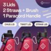 SKAULT water bottle comes with 3 lids; an innovative leak-proof Chug lid, Twist Lid and a straw lid that has been enhanced for better flow. Allowing for easy one-handed or hand-free sipping.
