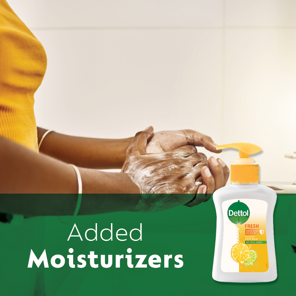 Dettol Fresh Liquid Handwash combines Dettol’s trusted germ protection with a fresh citrus fragrance, to clean and protect hands from germs, while providing 10x better germ protectionxx vs bar soap without germ reducing active ingredients.