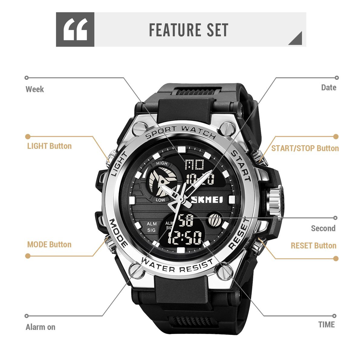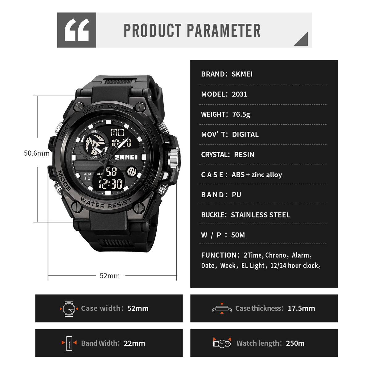 -SKMEI 2031 New Fashion Men Reloj Analog Digital Plus Analog Wrist Watch Jam Tangan LED Display Sports Waterproof Chrono Watch
