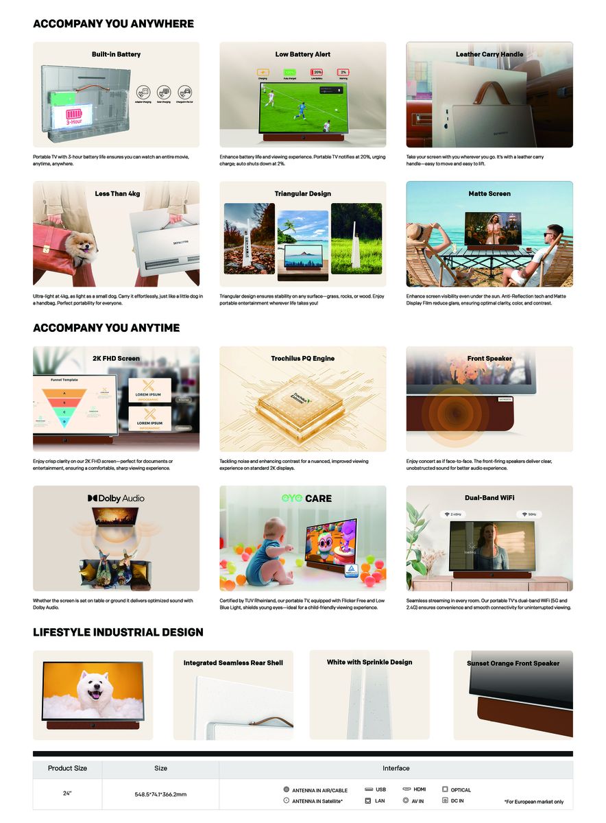 Skyworth 24″ STF6800 Portable Google TV with Battery Rust Orange