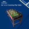 Action packed, this gaming table offers families the choice between Foosball, Air Hockey, Snooker and Table Tennis. Easy to flip between games with each game s accessories included, this is an all in one gaming solution to provide hours of fun for all ages. Compact and easy to assembly, the Slazenger 4 In 1 Gaming Table is the perfect addition to any game room or lounge.