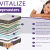 Sleepmasters Revitalize is a hand tufted pillow top design with a quality stretch fabric and a quilted border with 4 handles. Hand tufting ensures that the comfort layers and pocket spring system are locked in place for the life of the mattress. An active and responsive sleep surface is provided by a layer of high-density memory foam and supporting innovative layers of quality foam. The pocket spring system with butterfly edge supports ensures an edge-to-edge sleep surface with minimised partner movement disturbances.