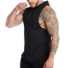 Sleeveless Mesh Sports Undershirt Men’s Hooded Fitness Quick Dry Undershirt – Black – XL