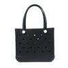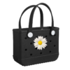 Small Ladies Beach Tote Waterproof Durable PVA Bag w/ Flower Charm – Black