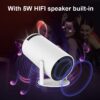 The Smart Portable HY400 Projector adopts WIFI6 technology, which has faster transmission rate and lower transmission delay, realizing screen synchronization in seconds. The built-in BT5.0 chip can connect to various Bluetooth devices.