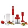 Hand-held kitchen appliance allowing whisking, mashing, cutting, chopping into a convenient beaker/container