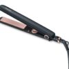 Ceramic coated plates infused with keratin and argan oil for smooth, shiny hair