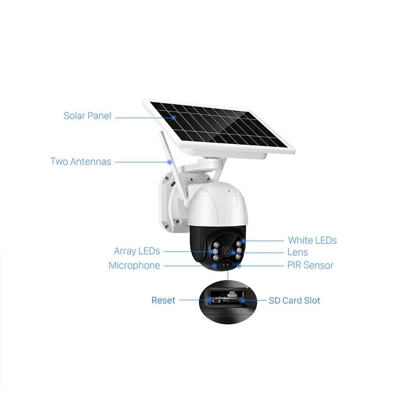 Solar-Powered: This camera is equipped with a built-in solar panel and rechargeable battery, allowing it to operate independently without the need for a continuous external power source. It harnesses solar energy during the day to power the camera and charge the battery for nighttime operation.
