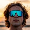 These goggle style sports glasses are designed with cyclists in mind. The curved frame allows for a closer, more streamlined fit as well as wider vision. Mirrored lenses offer extra UV and glare protection. And the goggle-like size and shape offers maximum protection from rain, road splash, debris, insects, wind and rain.
