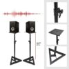 This high-performance speaker stand features flexible height adjustment, with a center column that can be adjusted from 26” to 52” and locked with a sturdy fixing pin for stability. Equipped with a 9” square platform, the 2mm thick non-skid pad supports each stand to support 90 pounds, making it perfect for home theater use. Its three-point triangular base (18” x 18” x 18”) provides excellent stability and is equipped with ground-mounted spikes for even weight distribution. This stand helps optimize acoustics, reduces vibrations and eliminates unwanted audio resonances, ensuring “clean” sound projection. The two included shock-absorbing pads are compatible with almost all types of audio equipment, suitable for studio monitors, subwoofers, large speakers and shelf speakers. High-density engineered foam is laboratory-tested to promote audio stability, noise isolation and sound vibration reduction, providing natural and clear bass. The non-skid rubber base ensures the stability of the speaker and supports adjustable mounting at three angles, perfect for stage or studio.