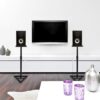 SQUARE PLATFORM: The speakers can be easily place at the 9” inches square platform with 2mm thick and non-slip pad. It has 90 lbs weight capacity for each speaker stand. Perfect for any home theater space