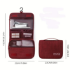 The bag features one main compartment along with several pockets, allowing you to neatly organize both large and small items like skincare products, cosmetics, and toothbrushes. This thoughtful layout helps you keep everything in its place, minimizing clutter and making it easy to find what you need.