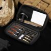 Small, lightweight, zippered storage case keeps all gun cleaning tools neatly and orderly and easily fits into any range bag; Storage Case Size: 17cm x 11cm. The small size makes it very easy to carry.