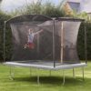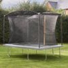 What better way to get fresh air and great exercise than to bounce up and down on your very own trampoline! Sportspower have developed the galvanised steel Quad Lok style frame! PLUS a safety enclosure is included for quick, convenient storage and protection. Trampoline with safety enclosure and padded frame and poles. A galvanised premium steel frame offers rust free protection, increased strength and maximum durability. The frame padding provides extra protection for user. Zinc coated, strength tested springs with a durable jump mat provide a smooth and consistent bounce experience. Recommended safety perimeter: 2m all around and 8m above.Â