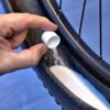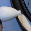A. The latex part of the sealant was absorbed into the tyre to seal rubber porosity, especially in tubeless-ready tyres and thin-walled racing tyres which are more porous. This seals the side walls and less frequent air top-ups will be required. Remove the remainder of the translucent liquid in the tyre and top up with fresh sealant
