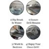 – For best results: Repeatedly dip brush in water during brushing hot grill to steam clean.