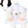 – Includes white costume dress decorative arms, attached belt and signature head buns.