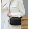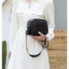 STLY & Leather Crossbody Bag with Gingham Strap – Black