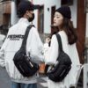 - It is worn over one shoulder with a strap that goes across the chest resting the bag on the lower back. While messenger bags are sometimes used by couriers, they are now also an urban fashion icon.