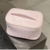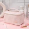Striped Solid Colour Portable Travel Cosmetic Bag PU Leather Makeup Bag – Pink