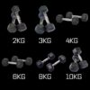 Comes with 6 pairs of hex dumbbells: 2kg, 3kg, 4kg, 6kg, 8kg, 10kg