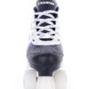 Quad skate designed for beginner and intermediate roller hockey players, and also for fans of classic skating on quad skates. The outer material of the boot is PVC. Rather softer lining ensures comfortable boot shape for child foot. The boot is reinforced at the tip for better protection of the player foot . Nylon truck stands out for its strength and light weight. In the back is a classic loop for traditional tying of laces. For the same reason it is used raised and padded tongue and longer laces .