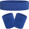 Sweatbands Set Head Band and Wrist Bands – Absorbent Elastic Sport Bands – White