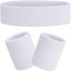Sweatbands Set Head Band and Wrist Bands – Absorbent Elastic Sport Bands – White