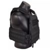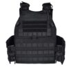 Adjustable shoulder strap with detachable shoulder pads. webbing over the entire vest for modular attachments. Internal sleeves for plate front and back.