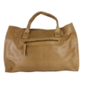 Manufactured from 100% buffalo leather. Tan in colour with tan colour handles and a removable shoulder strap. Handle drop measures 18 cm. Shoulder strap is adjustable with maximum and minimum lengths of 142 cm and 75 cm respectively. The front face of the bag has a zipped compartment. The back face of the bag has one zipped pocket. This bag has a single main compartment with an open and a zipped pocket on the inside. There are gaps at either ends of the zip which can be folded inwards. These gaps are present to accommodate the boxy shape of the bag when full. Please note: Leather is a natural product and as such there will be imperfections on the grain. This leather has a light surface finish to give it that distressed colour and look whilst maintaining the visibility of the natural grain