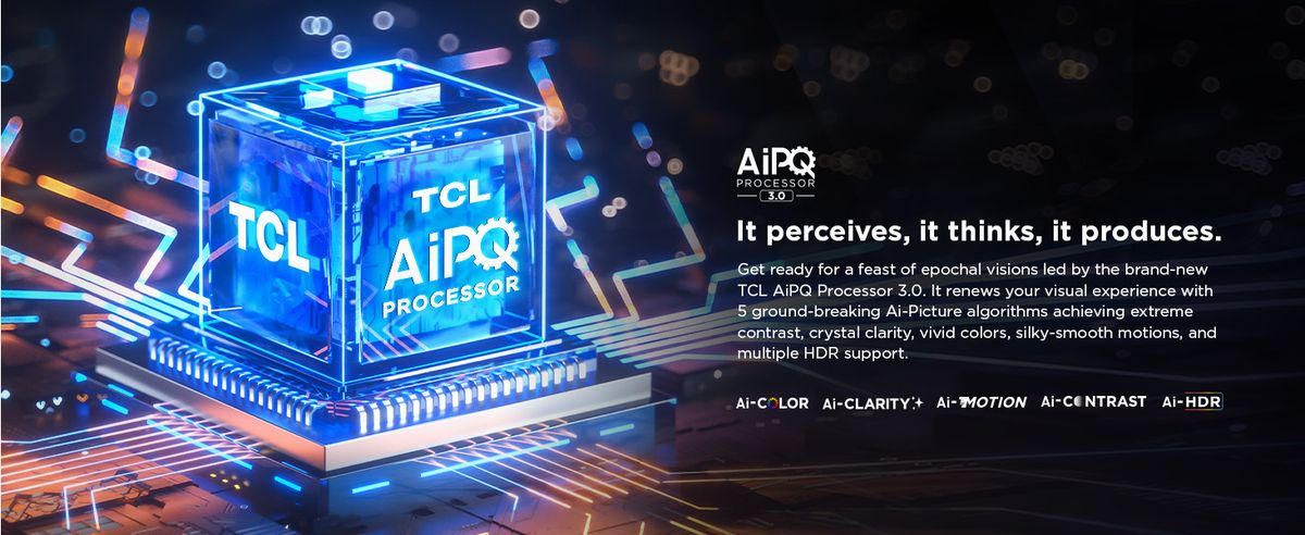 TCL Ai-COLOUR possesses up to 100% color volume and 94% DCI-P3 color gamut, which accurately perceives micro color details in the real world via TCL AiPQ processor database. Every frame you see is tuned, corrected, and enhanced to a vivid lifelike vision under more than 1,000,000,000 color hues.