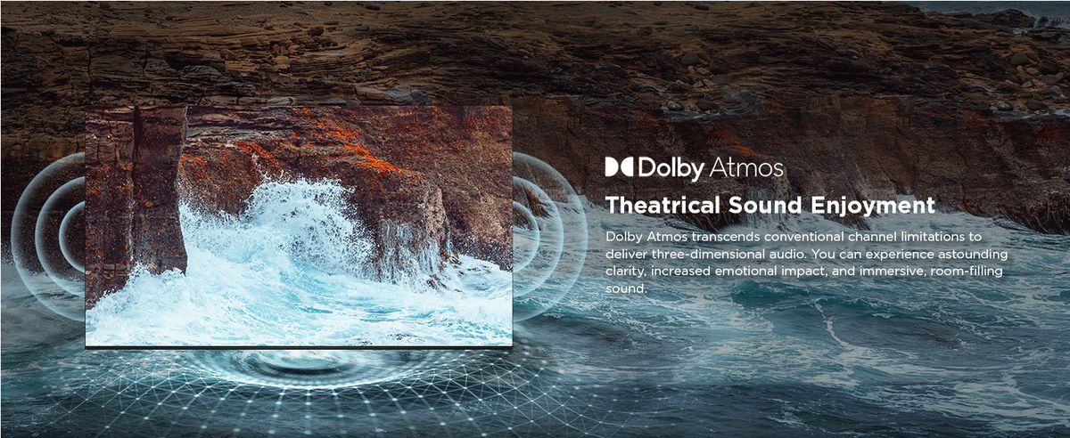 Dolby Atmos transcends conventional channel limitations to deliver three-dimensional audio. You can experience astounding clarity and immersive, room-filling sound.