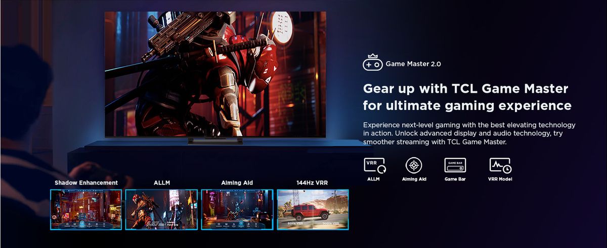 Experience next-level gaming with the best elevating technology in action. Unlock advanced display and audio technology, try smoother streaming with TCL Game Master.