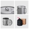 The Naturehike Africa TDG03 Titanium Pot offers the benefits of titanium including an excellent strength to weight ratio, corrosion resistance, temperature resistance paired with a lid and fold-away handle at an ultralight 147g.