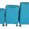 – Vibrant teal blue 3-piece luggage set with a hard shell design