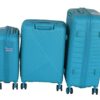 Teal blue luggage, polypropylene luggage, hard shell trolley, spinner wheels suitcase, travel luggage, lightweight luggage, durable luggage, water-resistant suitcase, scratch-resistant luggage, 3-piece luggage set, telescoping handle luggage, combination lock suitcase, interior organization luggage, stackable luggage, stylish suitcase, travel suitcase set, trolley luggage, modern luggage set, PP luggage, ribbed pattern suitcase, dual spinner wheels luggage, travel bag set.