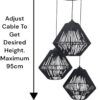 1 x Teempeest 3 Way Black Threaded Pendant Light