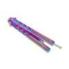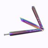 This knife has a razor-sharp tanto style 10cm steel blade with a smooth rainbow finish. The steel handle has a studded texture for grip and a secure lock to keep the knife from accidently opening. The knife folds to 14cm and comes with a nylon sheath for easy carry.