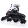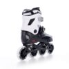 The skate liner is ventilated, has holes around its entire circumference and reinforced with PVC at the top. There is an elastic neoprene in the area of the fingers to increase comfort. In the back, there is a loop with a reflective strip. Reflective parts are also added on the outside of the skate. In the area of the Achilles tendon, the liner is lowered and shaped into a V-shape, which enhances manoeuvrability and mobility, and thus easier execution of freestyle tricks and moves. The liner has cut-outs in the area of the ankle bend sewn with elastic neoprene, which achieves optimal anatomical dispositions of the liner while maintaining its rigidity. The lower part of the liner uses a material that slides less in the skeleton. The shoe has an anatomical insole with a thickness of 3mm, which is comfortable enough, yet not too soft.