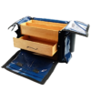 The Mini Moosa has a top wooden storage box and a wooden storage drawer with storage space below. The Mini Moosa has 2 PVC trace pouch pockets on either side of the bag, 1-rod holder and additional clear pouches on the inner sides of the PVC flaps for licenses or traces. Additional straps are included to comfortably carry a Safari Chiller 12L or 18L underneath the bag.