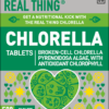 100% Pure, cracked cell chlorella algae, packed with the antioxidant chlorophyll. It’s the “superfood” for super-health.