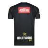 The Sharks Home jersey for the 2024/2025 season features a bold and dynamic design that embodies the spirit of the team. The primary colour remains the traditional black, accentuated by a striking pattern throughout.