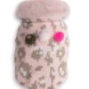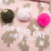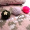 Material: Made from printed knit rib fabric, with faux fur collar and flannel fleece lining. With three pompoms made out of wool, boiled wool and organza.