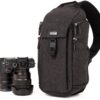 Innovative âSlings Both Waysâ functionality allows you sling the bag over your left or right shoulder, depending on your preference. By simply switching the shoulder strap to either side of the bag, you can adjust the load for greater comfort on long outings. Access panels on both sides provide access to your camera gear without having to take the pack off or reposition the dividers.