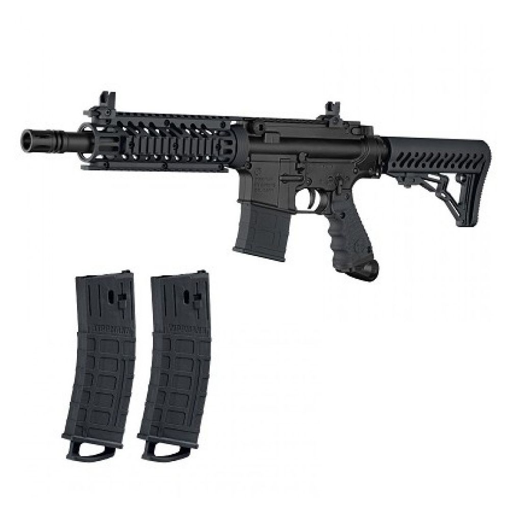 The all Black Tippmann TMC Mag Fed paintball marker is here. This is the latest MagFed gun that is an extremely authentic AR Styled Tactical Carbine Marker! Go MagFed or traditional loader and get the best of both worlds in one awesome package. The TMC can be fully accessorized giving the player more unique options for Tactical Games, combining functionality with the world renowned Tippmann reliability for the next standard in MagFed Products.