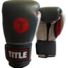 1 x TITLE Leather Sparring Boxing Gloves – Grey Red and Black