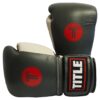 1 x TITLE Leather Sparring Boxing Gloves – Grey Red and Black