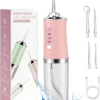 CLEANING 3 MODES & 4 REPLACEABLE NOZZLES -The oral cleaner has normal, soft, and pulse modes to choose from and a low-noise design with memory function, 360 rotating long nozzle, which can meet various oral needs,1 classic jet tip+1 tongue scraping tip+1 Periodontal tip+1 orthodontic tip, specifically designed for periodontitis, braces.