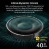 Immerse yourself in the music with the powerful 40mm dynamic drivers, delivering an expansive frequency response from deep bass to sparkling highs.