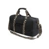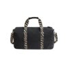 This spacious travel bag is fully lined inside. There is an outside zip compartment for easy access to store keys, a wallet, a passport etc. There is also a zip compartment on the inside. The adjustable removable long strap can be worn across the body or over the shoulder. The shorter hand straps are comfortable as well due to a flap over with studs. These straps are made from webbing. The bag itself is made from durable canvas with PU trims. Dimensions height 29cm x length 54cm x depth 22cm.